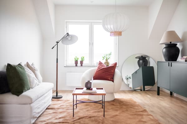 Genomgående i bostaden ligger en trestavs ekparkett och väggarna är målade i vitt. Det ger ett enhetligt och harmoniskt intryck, samtidigt som det skapar en neutral bas att inreda efter. Utöver förvaring i bostaden ingår även ett externt förråd, vilket ger plats åt exempelvis säsongssaker, verktyg eller sportutrustning.