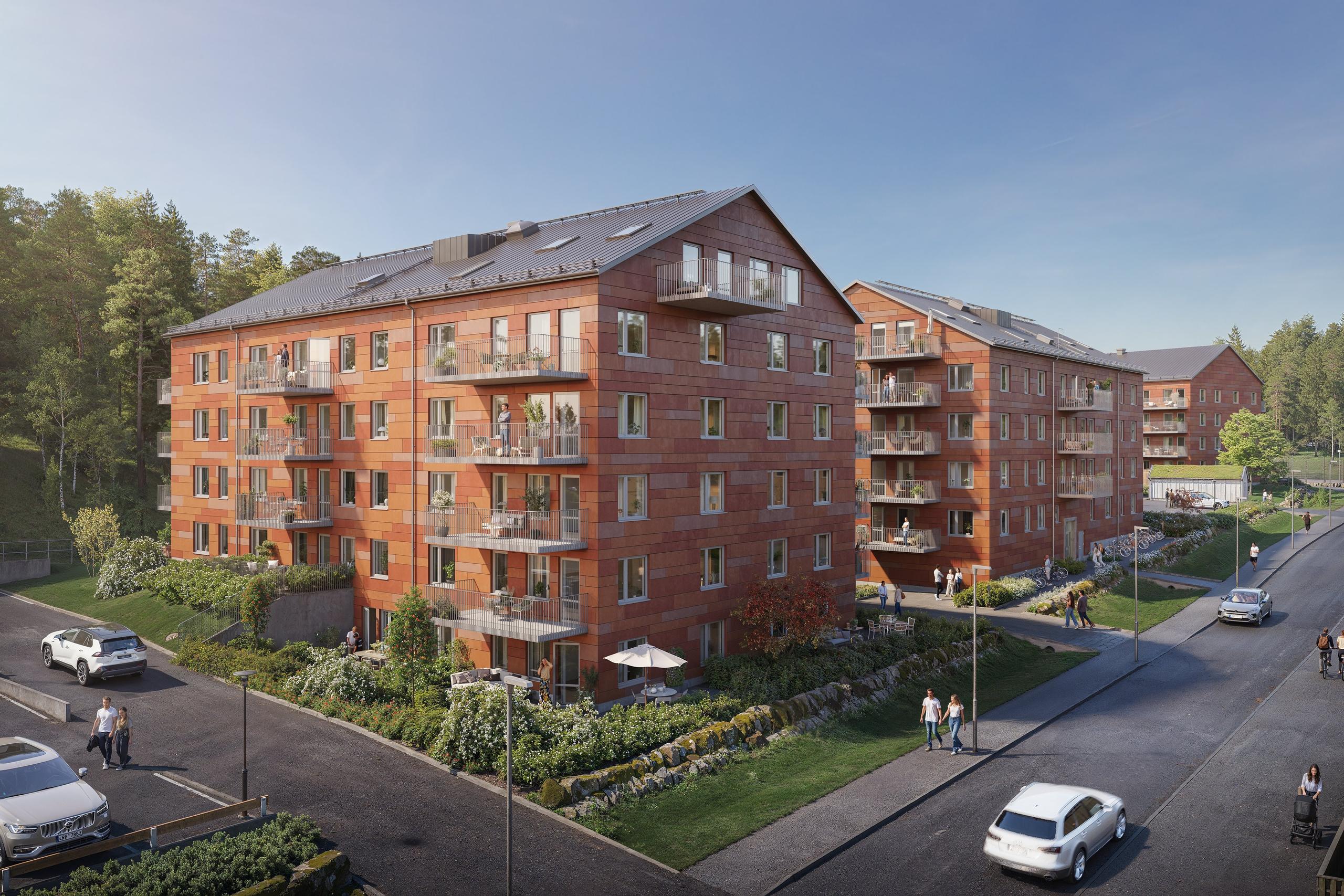 Husen är placerade runt en grönskande höjd där naturen får ta plats i fina utblickar från lägenheterna. Här finns allt ifrån en liten etta till rymliga fyror med extra WC. Det finns möjlighet till parkering med laddmöjlighet samt cykelplatser. Husens kulörer går i jordartsfärger som ska smälta in i naturens färger på platsen där vi även bevarar stengärdsgårdar som smälter in i miljön och även fungerar som bostad för olika arter. Husen miljömärks med Svanen och de mindre komplementbyggnaderna får gröna tak.