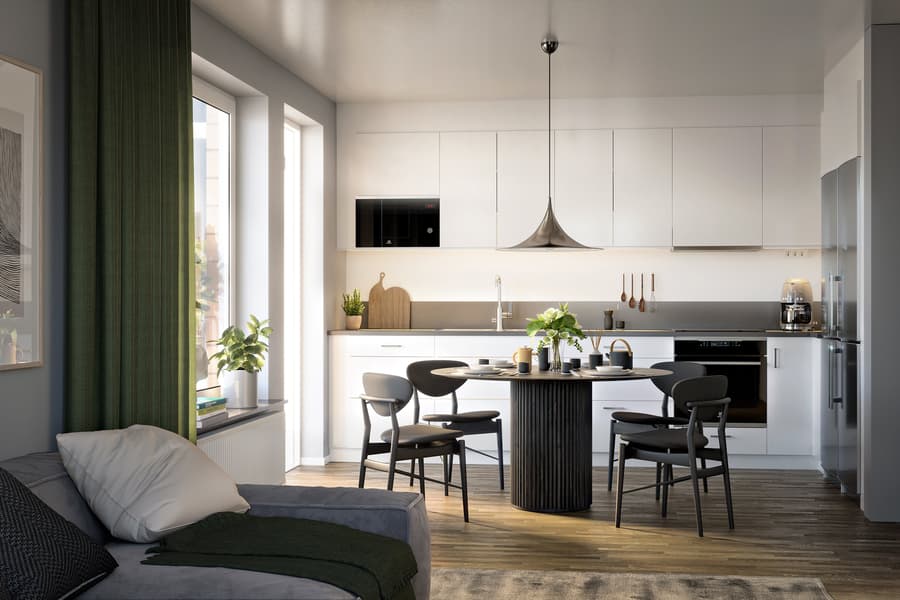 När du köper en lägenhet eller ett hus från JM har du möjlighet att välja mellan olika inredningskoncept. Våra inredningsexperter väljer noga ut material baserade på miljömedvetenhet, långsiktighet och hög kvalitet samtidigt som de har full koll på vilka trender som gäller. En stor vikt läggs på research och tuffa krav på våra leverantörer så du alltid kan vara trygg med ditt inredningsval.