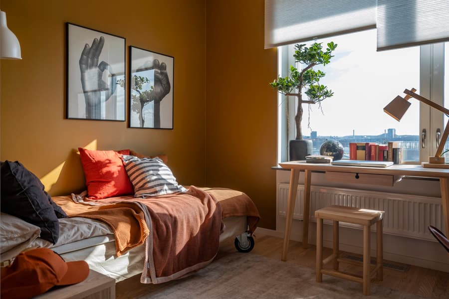 - Testa att måla en fondvägg, som innebär att en vägg i rummet skiljer sig från de resterande. Du kan nyttja delar av väggar, kanske även en bit av taket eller in över ett hörn.