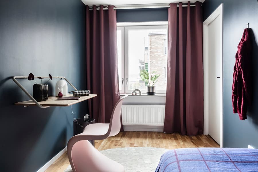 - Vågad och dramatiskt: Svart, mörkgrå och mörkblå är djärva färger som ger rummet en sofistikerad och elegant atmosfär. För den som vill skapa en dramatisk effekt är dessa färger ett bra val.