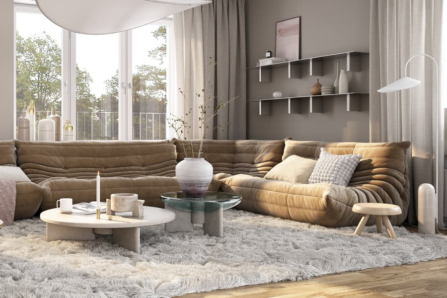 Textilier är nyckeln till att skapa ett vardagsrum där man vill stanna länge. Gardiner och mattor ramar in rummet, medan filtar, plädar och kuddar bjuder in till vila. Välj gärna dämpade färger som förstärker känslan av lugn.