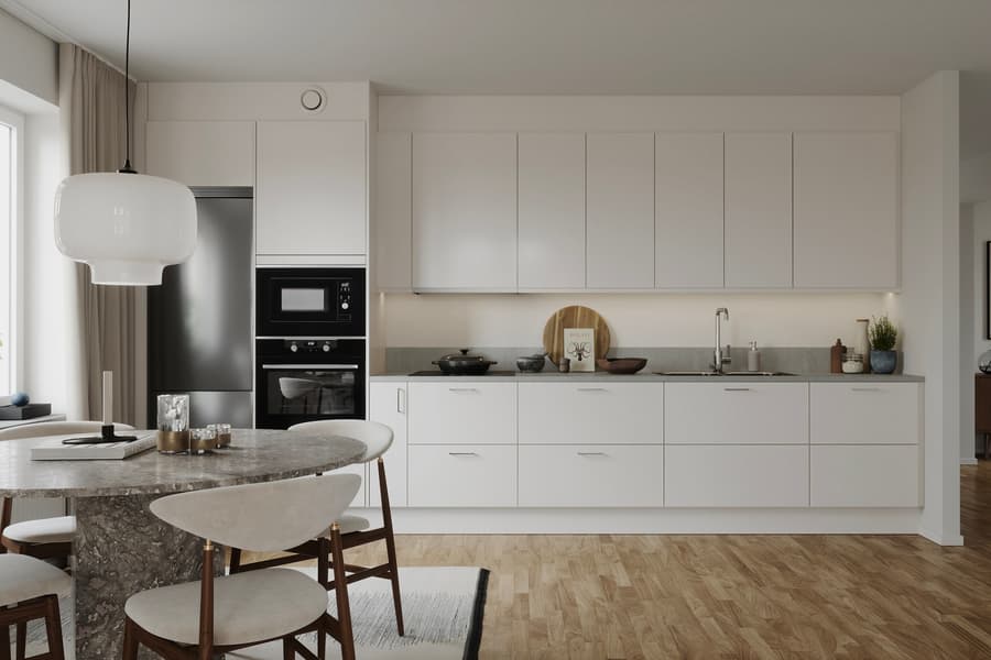 En av fördelarna med att vara med från början i ett projekt är att du har möjlighet att göra inredningsval och påverka den fasta inredningen. Du kan välja allt från kakel och klinker till färg på köksluckorna, vilket innebär att du slipper framtida renoveringar och extra miljöpåverkan. Genom att välja direkt något som håller i längden och som du tycker är fint, skapar du ett hem som passar din stil från start.