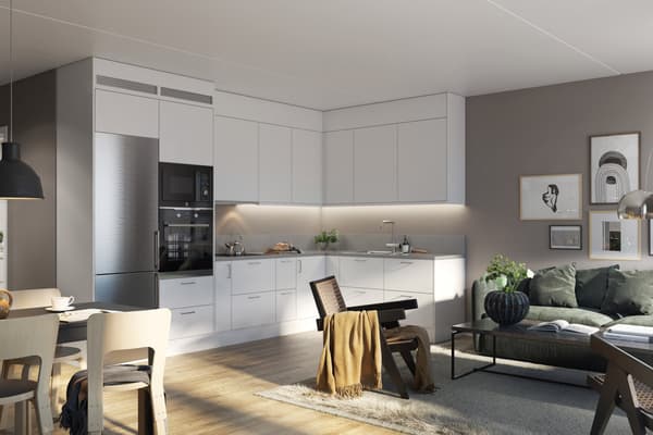 Den nya bostaden är en trea på 87 kvadratmeter som paret delar med 19-årige sonen Isak och den portugisiske vattenhunden Peak. En av de största anledningarna till att det blev just den lägenheten är att läget är mitt i Älvsjöstaden.