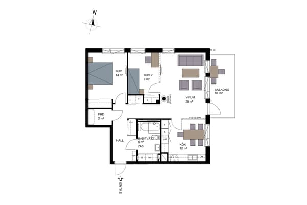 Trevlig öppen planlösning mellan kök och vardagsrum. Parkettgolv och ljusa väggar. Gott om plats för soffgrupp och matbord intill stora fönsterparti och ljusinsläpp från två håll. Kamin finns som tillval. Utgång till balkong.