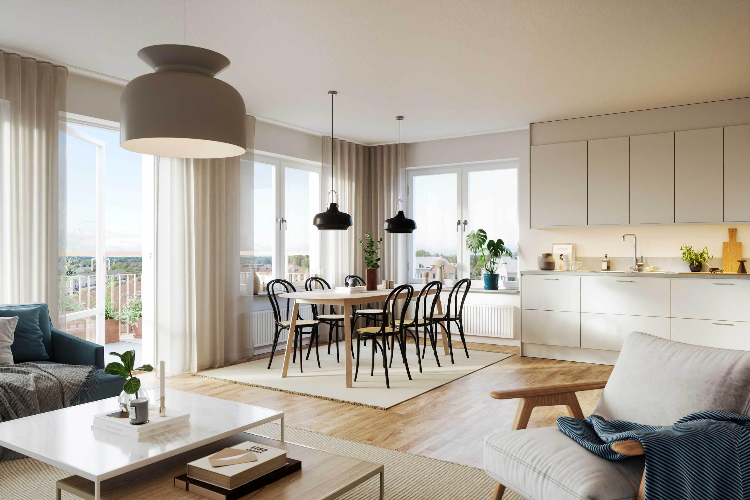 Gavellägenhet med många lyxiga kvalitéer såsom dubbla badrum, klädkammare och förråd, tre bra sovrum och ett stort kök/vardagsrum. Slutligen en lyxig balkong om hela 16 kvm i västerläge! Bostaden är inredd med kök från Vedum i stilren design och vitvaror från Electrolux. JM:s originalinredning är ett modernt men tidlöst koncept som tilltalar många.