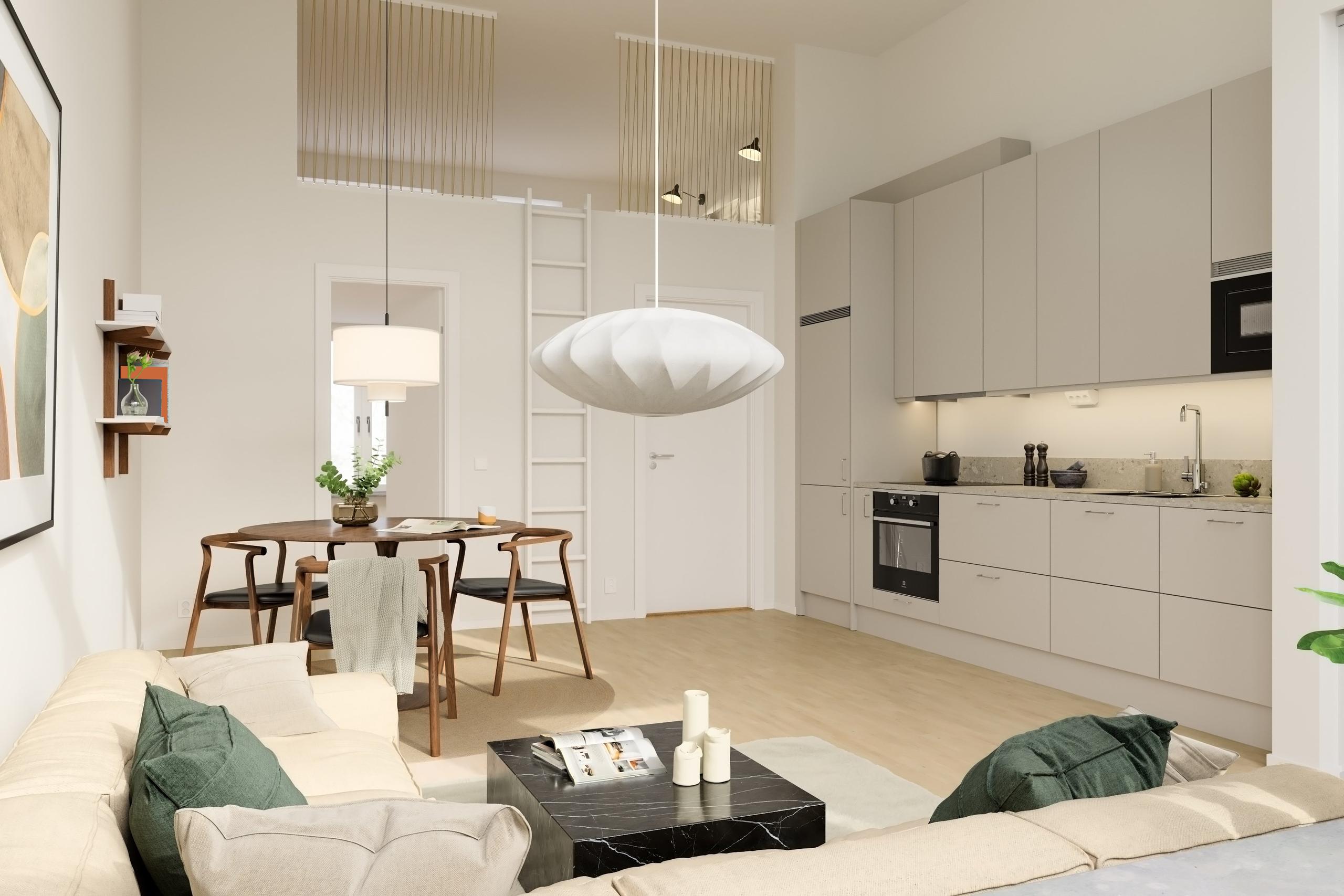 I Flaggspelets ägarlägenheter är inredningen vald med omsorg om både kvalitet, utseende och funktion. Våra inredare har komponerat en tidlös och vacker originalinredning som ger dig utrymme att sätta din egen stil och känsla på ditt nya hem.