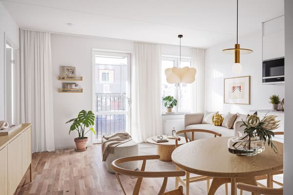 Välplanerad ägarlägenhet på våning 2. Här presenteras 56 kvm om 2 rok med öppen och inbjudande planlösning tillsammans med kök och vardagsrum. Kök i vinkel och balkong med utblick mot Sjögatan. I hallen har man bra förvaring i stor skjutdörrsgarderob. Rymligt sovrum med förvaring i skjutdörrsgarderob. Badrum med kombimaskin och spotlights i taket. Bostaden är inredd med kök från Vedum i stilren design och vitvaror från Electrolux. I kvarteret kommer det finnas tillgång till både en gemensam takterrass och en bokningsbar gästlägenhet. Förråd tillhör lägenheten. I angiven månadsavgift till samfällighetsföreningen ingår följande: Värme, varm-och kallvatten, renhållning, avsättning till underhåll, förvaltning (teknisk och ekonomisk), fastighetsförsäkring, serviceavtal, administration och mätaravgifter. (Schablonkostnad för förbrukning av varm- och kallvatten är inräknad i månadsavgiften. Mätning av förbrukningen sker löpande och lägenhetsinnehavare debiteras efter verklig förbrukning). Garageplats ingår i månadsavgiften.