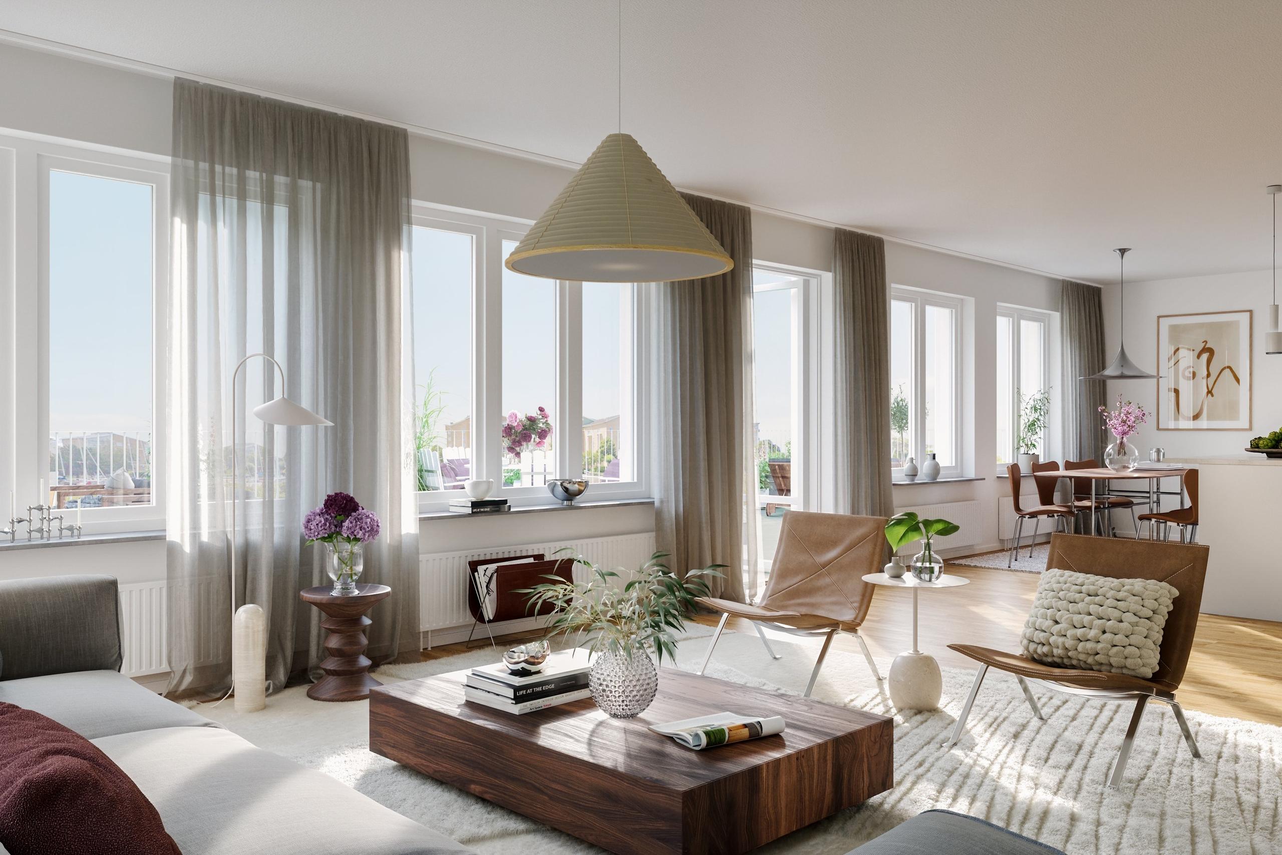 Bostaden är inredd med kök från Vedum i stilren design och vitvaror från Electrolux. I kvarteret kommer det finnas tillgång till både en gemensam takterrass och en bokningsbar gästlägenhet. Förråd tillhör lägenheten. I avgiften till samfällighetsföreningen ingår följande: Värme, varm-och kallvatten (Schablonkostnad för varm- och kallvatten. Mätning av förbrukning gällande kall-och varmvatten sker och lägenhetsinnehavare kommer att debiteras efter verklig förbrukning), renhållning, avsättning underhåll, förvaltning (teknisk samt ekonomisk), gemensam el, fastighetsförsäkring, serviceavtal, administration och mätaravgifter. Även garage eller markparkering ingår.