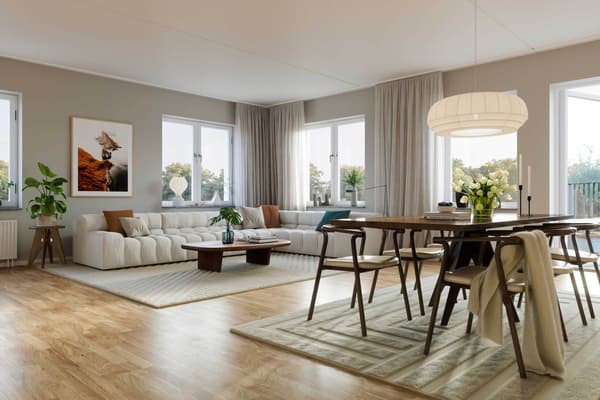 Fyra rum och kök med två takterrasser. Kök med köksö i öppen planlösning med vardagsrummet. Braskamin i vardagsrummet. På ena takterrassen har det gjorts förstärkning som möjliggör att ha badtunna. Separat tvättavdelning. Badrum plus gästbadrum. Flexibel planlösning som möjliggör större sällskapsytor. Bostaden är inredd med kök från Vedum i stilren design och vitvaror från Electrolux. I kvarteret kommer det finnas tillgång till både en gemensam takterrass och en bokningsbar gästlägenhet. Förråd tillhör lägenheten. I avgiften till samfällighetsföreningen ingår följande: Värme, varm-och kallvatten (Schablonkostnad för varm- och kallvatten. Mätning av förbrukning gällande kall-och varmvatten sker och lägenhetsinnehavare kommer att debiteras efter verklig förbrukning), renhållning, avsättning underhåll, förvaltning (teknisk samt ekonomisk), gemensam el, fastighetsförsäkring, serviceavtal, administration och mätaravgifter. Även garage eller markparkering ingår.