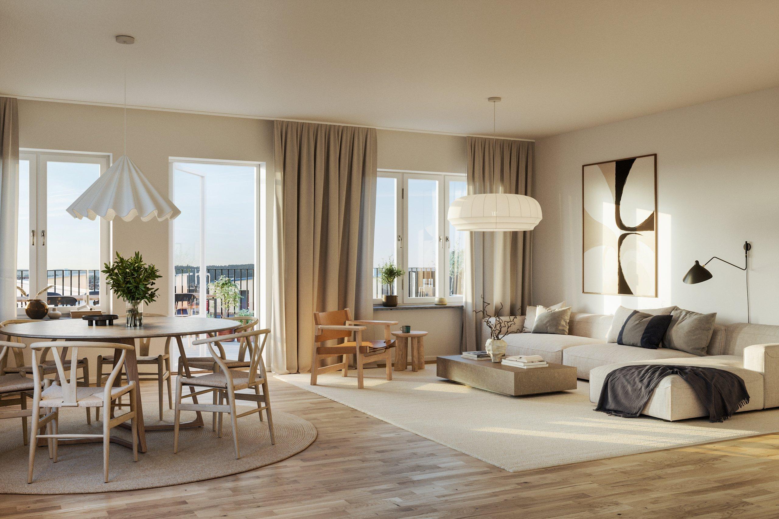 En spektakulär penthousefyra högst upp i huset med hörnläge och en magnefik takterrass på hela 67 kvm. Här får du utsikt i tre väderstreck, sol från morgon till kväll och en känsla av frihet som bara ett riktigt penthouselägenhet kan ge. Förstärkt konstruktion gör det dessutom möjligt att installera badtunna för den som vill sätta guldkant på vardagen. Bostaden präglas av fint ljusinsläpp samt en härlig rymd då takhöjden är på hela 2,7 m. De stora sociala ytorna med materialval utöver det vanliga binds samman av ett modernt kök med köksö i öppen planlösning mot vardagsrummet, där en stilren braskamin skapar både värme och karaktär. Ett generöst master bedroom erbjuder en privat oas med egen wc/dusch och klädkammare. Det större badrummet är utrustat med tvättmaskin och torktumlare. En bostad som kombinerar exklusivitet, funktion och utsikt, för dig som söker något alldeles extra.