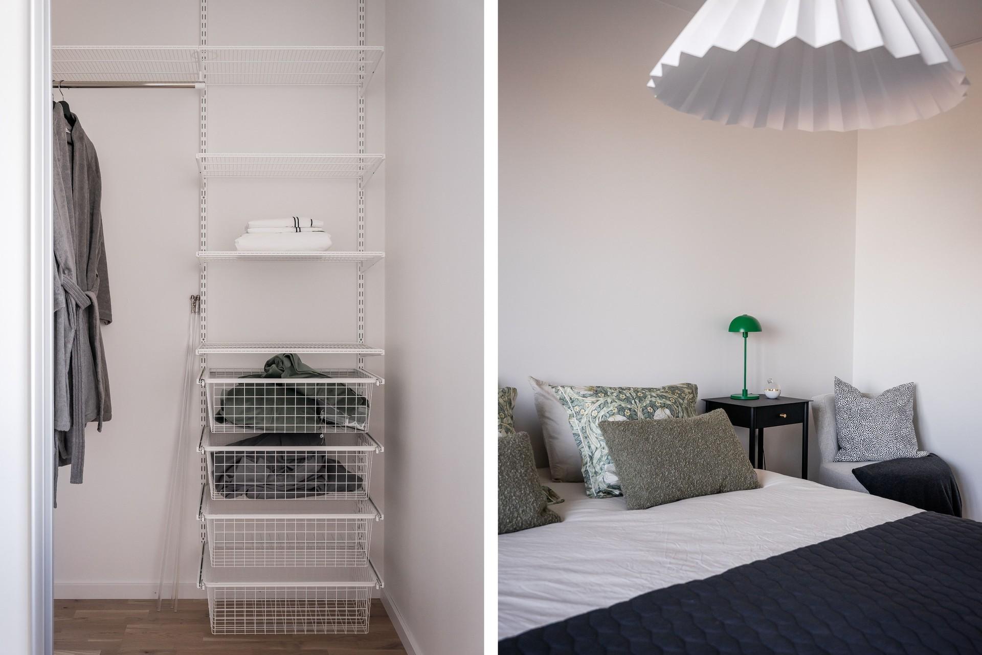 Bostaden är inredd med kök från Vedum i stilren design och vitvaror från Siemens. Köket är utrustat med kyl/frys, induktionshäll och integrerad diskmaskin samt ugn och mikrovågsugn. Helkaklat badrum med inredning från INR och spotlightbelysning i tak. Standarden är hög med JM originalinredning och möjlighet finns att göra tillval för att få en personlig touch. Bra förvaringslösningar med flexibla garderobssystem från Elfa och tillgång till ett förrådsutrymme i källarplan där det även finns cykelparkering.