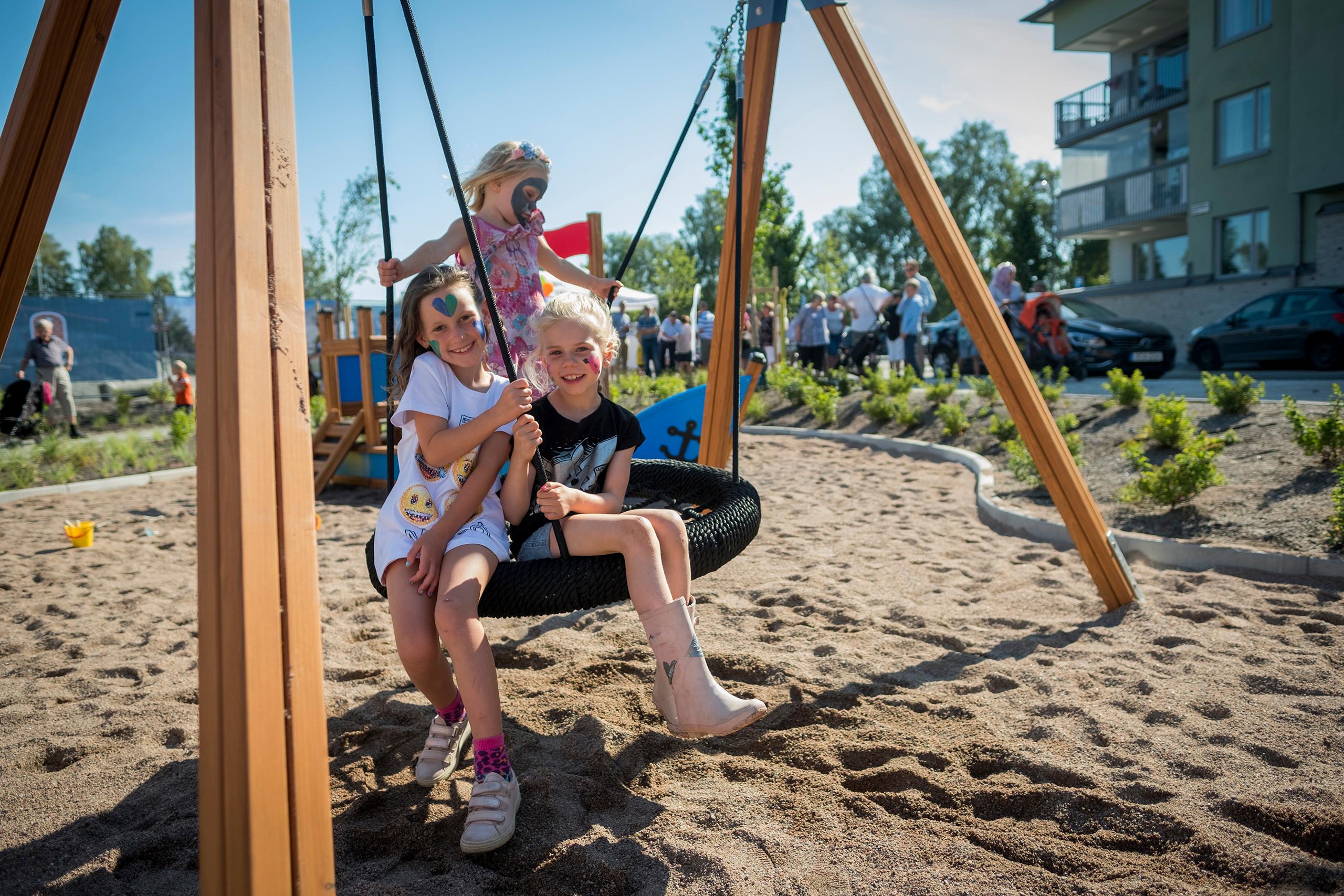 Barn behöver utrymme för lek och spring. I de nära omgivningarna finns flera fina lekplatser och grönområden. Närmast i Revingelyckan som kommunen ska rusta upp och förnya med möjligheter till både lek och spontanidrott. 600 meter bort ligger Stadsparken med både lekplatser, skatepark och Högevalls äventyrsbad.