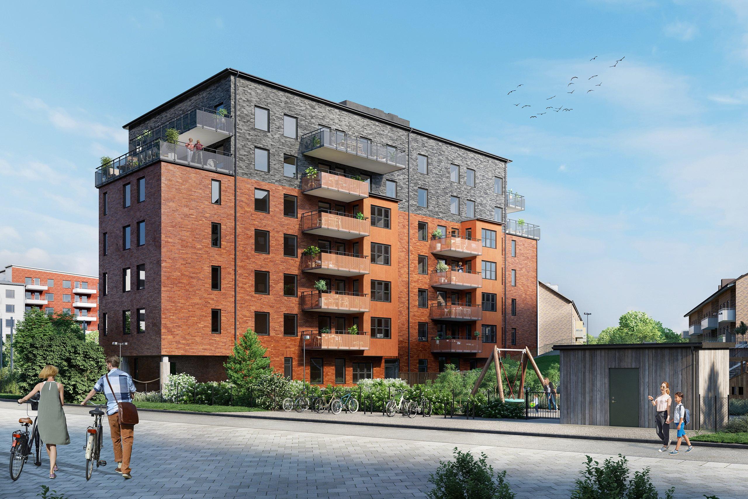 Bostadshusen i kvarteret Banmästaren har hämtat inspiration från den närmsta grannen, Lokstallarna, och andra industribyggnader från samma tid. Det röda vackra slagna teglet och de spröjsade fönstren med sina markanta, mörka karmar kommer att bli en gemensam nämnare.