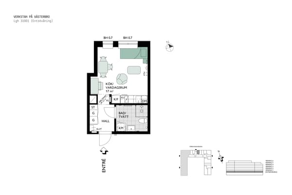 Samtliga lägenheter har tillgång till ett förrådsutrymme i källarplan där det även finns cykelparkering och garage.
