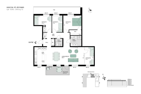Denna rymliga femma om 123 kvm erbjuder en fantastisk generös terrass med härliga utblickar och som har plats för både loungemöbler och matbord. Här är även förberett för installation av en badtunna – perfekt för avkoppling och sociala stunder. Ytterligare en balkong som vetter mot gården. Köket är välutrustat och har gott om plats för ett stort matbord, vilket gör det perfekt för både vardag och middagsbjudningar. Här finns möjlighet till fyra sovrum eller till ännu större sociala ytor för det stora sällskapet. Badrummet är välutrustat och har en praktisk tvättavdelning med både tvättmaskin och torktumlare, och dessutom finns en separat WC/dusch för extra bekvämlighet. Med en takhöjd på 2,66 meter får bostaden en känsla av rymd och luft. En bostad som erbjuder både funktionalitet och härliga ytor för ett bekvämt och socialt liv!