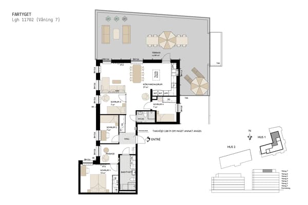 Femma om 120 kvm med fina utblickar och terrass samt balkong. Möjlighet till fyra sovrum eller större sociala ytor. Kök med möjlighet att välja köksö i öppet samband med vardagsrum. Välutrustat badrum med tvättavdelning samt wc/dusch. Bra förvaring i garderober och klädkammare.