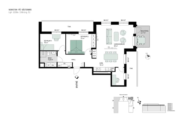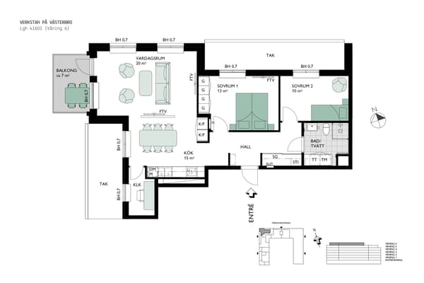 Gavelbostad om 80 kvm med balkong. 3:a med modernt utrustat kök med möjlighet att välja köksö. Välutrustat badrum med tvättavdelning. Två sovrum.