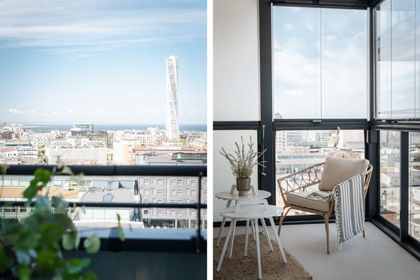 Trevliga sällskapsytor med gott om plats för soffgrupp och matbord. Fullutrustat kök i öppen planlösning. Två balkonger, varav en är inglasad och en är öppen, med kvällssol. Stort sovrum med gott om förvaring. Det mindre sovrummet är utmärkt att nyttja som barnrum, kontor eller gästrum.