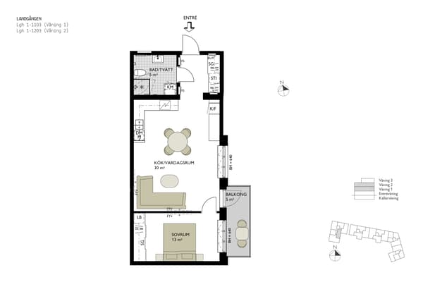 På 40 kvm får du här en kompakt tvåa som verkligen utnyttjar ytan på bästa sätt. Den öppna planlösningen mellan kök och vardagsrum gör bostaden social och ljus, medan sovrummet ger en privat oas. Balkongen blir ett extra rum större delen av året, perfekt för frukost i morgonssolen. Badrummet är utrustat med kombimaskin och smarta förvaringslösningar gör vardagen enkel.