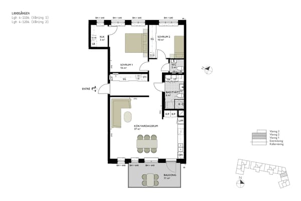 Denna trea på 47 kvm är ett exempel på hur smart arkitektur kan skapa ett hem som känns större än siffrorna antyder. Vardagsrum och kök ligger i öppen anslutning till varandra vilket ger en social och trivsam mittpunkt. Från vardagsrummet når du balkongen som blir en förlängning av bostaden, perfekt för avkoppling eller en liten odling. De två sovrummen gör planlösningen flexibel och passar både för paret, den lilla familjen eller dig som vill ha ett arbetsrum hemma.