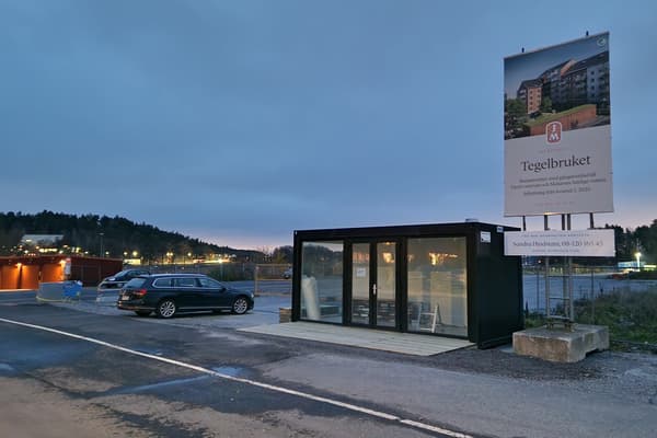 Nu är äntligen vår visningsbod på plats i Ekerö Strand. Här finns vi flera gånger...
