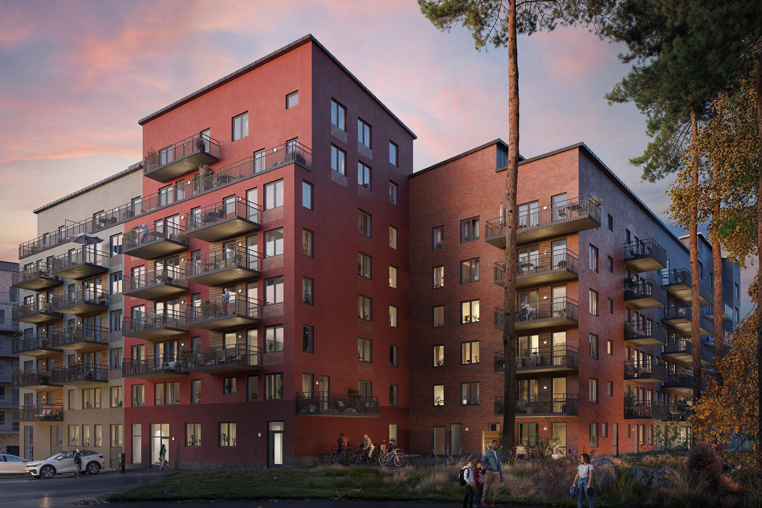 De flesta bostäderna får balkong eller uteplats i Vattentornet Västra. Flera i västerläge med fri utsikt över Nacka och grönområdena intill kvarteret eller den lummiga innergården.
