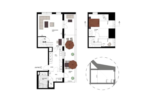 Köket öppnar upp till det rymliga och ljuvliga vardagsrummet vilket har stora fönsterpartier i två väderstreck och dubbeldörrar ut till den enastående terrassen. I vardagsrummet ligger också trappan upp till det övre planet. Det övre planet har stora ytor och här finns plats för dubbelsäng, förvaring och skrivbord.