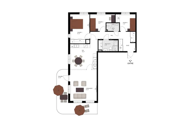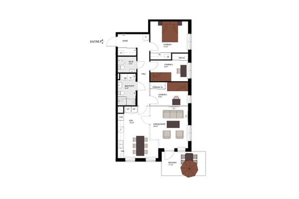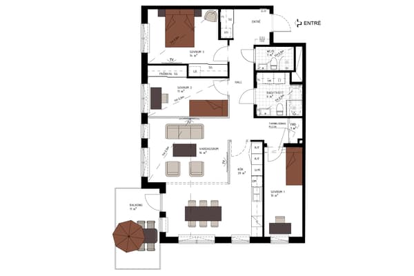 Bostaden har genomgående naturliga materialval såsom 3-stavsparkett i ek, fönsterbänkar i natursten och vita väggar vilket ger en klassisk och stilren känsla där du själv har möjlighet att sätta din personliga prägel.