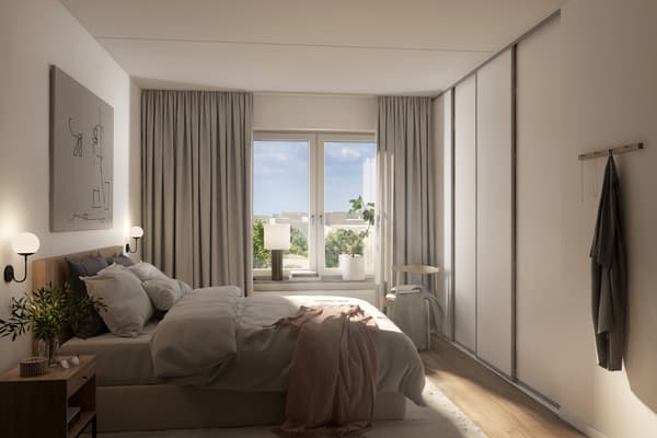 Bostaden rymmer tre sovrum med olika karaktär. Master bedroom har en stor skjutdörrsgarderob, ett av de andra sovrummen är utrustat med ytterligare en skjutdörrsgarderob, medan det tredje sovrummet fungerar utmärkt som barnrum, gästrum eller hemmakontor.