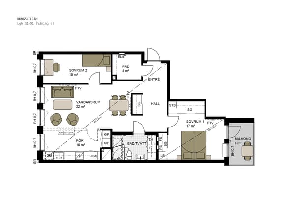 Bostadens interiör är utformad utifrån en stilren känsla med naturliga material så som ekparkett, fönsterbänkar i natursten och vitmålade väggar. Denna bas ligger till grund för att var och en sen ska sätta sin egen prägel utifrån eget önskemål och preferens. Järvastaden är ett citynära modernt och familjevänligt område med påtaglig känsla av småstadsidyll. Fina parker, härliga natur- och fritidsområden. För all tänkbar shopping och nöjen så finns Mall of Scandinavia samt Friends arena i närheten. Runt knuten erbjuds bra närservice, butiker samt goda kommunikationer.