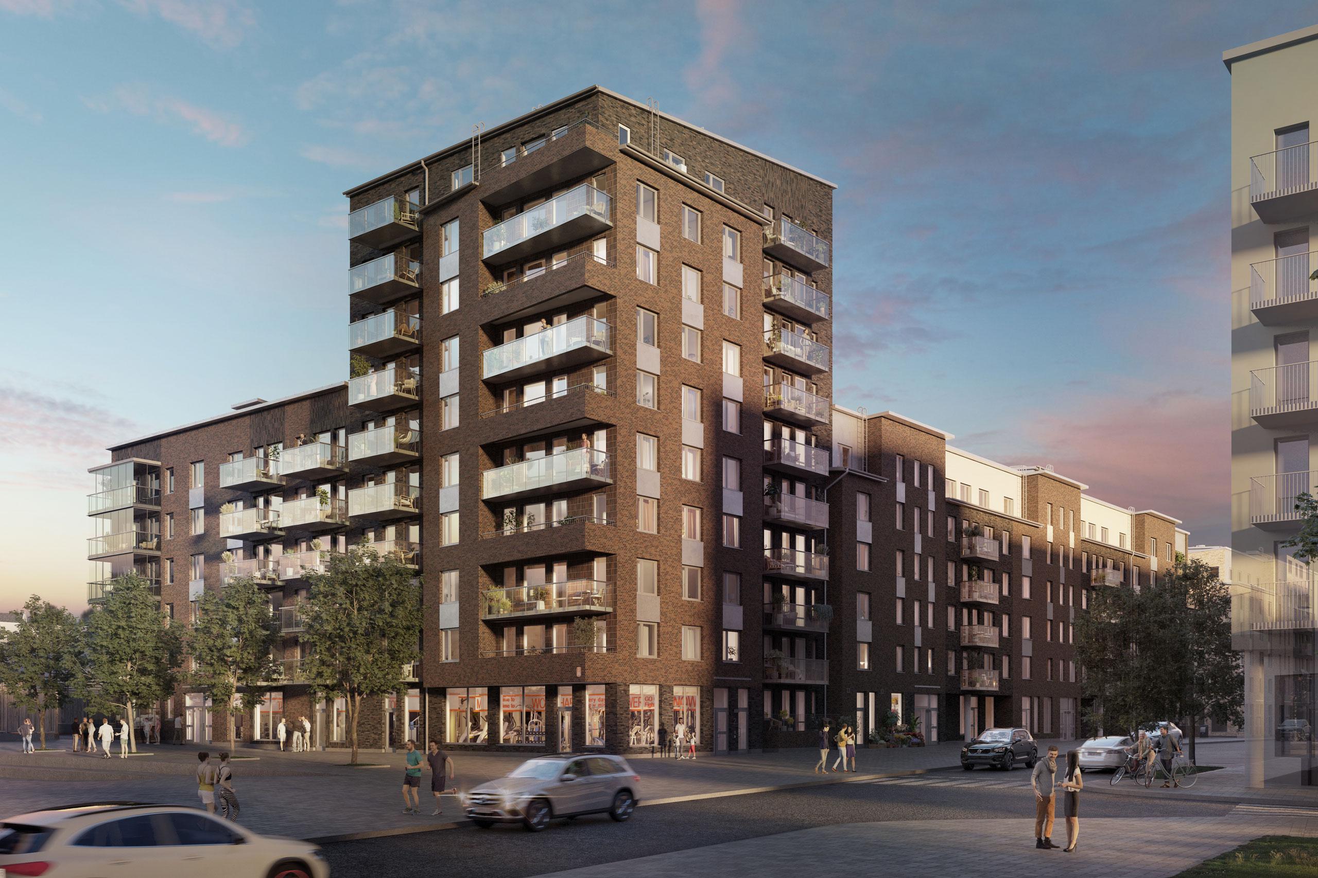 Kvarteret Gunhild ligger centralt i nya Bromstensstaden på gammal industrimark, något som givit inspiration åt kvarterets tegelfasader. Teglet är murat för hand för att ge byggnaderna ett personligt uttryck.