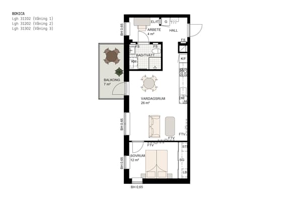 Lägenheten utrustas med Triple play från Telia (IP-telefoni, bredband och tv). I månadsavgiften ingår ca 20 tv-kanaler, internetanslutning 1000/1000 Mbit/s, bredbandstelefoni samt värme och kallvatten. Till bostaden hör ett källarförråd.