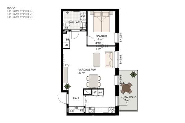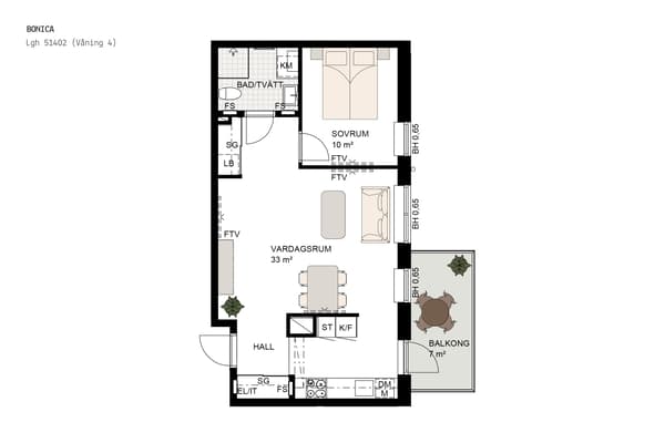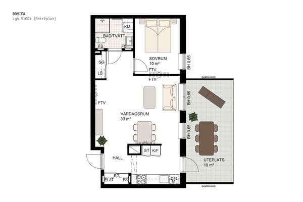 Välplanerad tvåa med bra förvaring och stor uteplats i söderläge mot innergården.