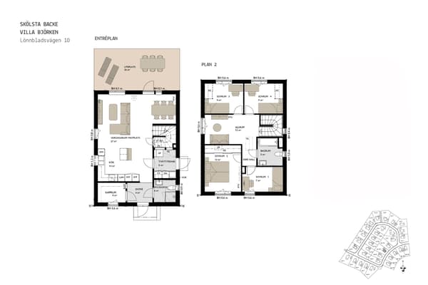 På övre planet hittar du familjens lugna och privata utrymmen, med ett rymligt allrum som har fönster i två väderstreck, vilket ger ett fint ljusinsläpp. Här finns också fyra välplanerade sovrum som skapar gott om utrymme för hela familjen. Behöver du ett extra sovrum kan du välja en alternativ planlösning som ger möjlighet till hela fem sovrum på plan 2.