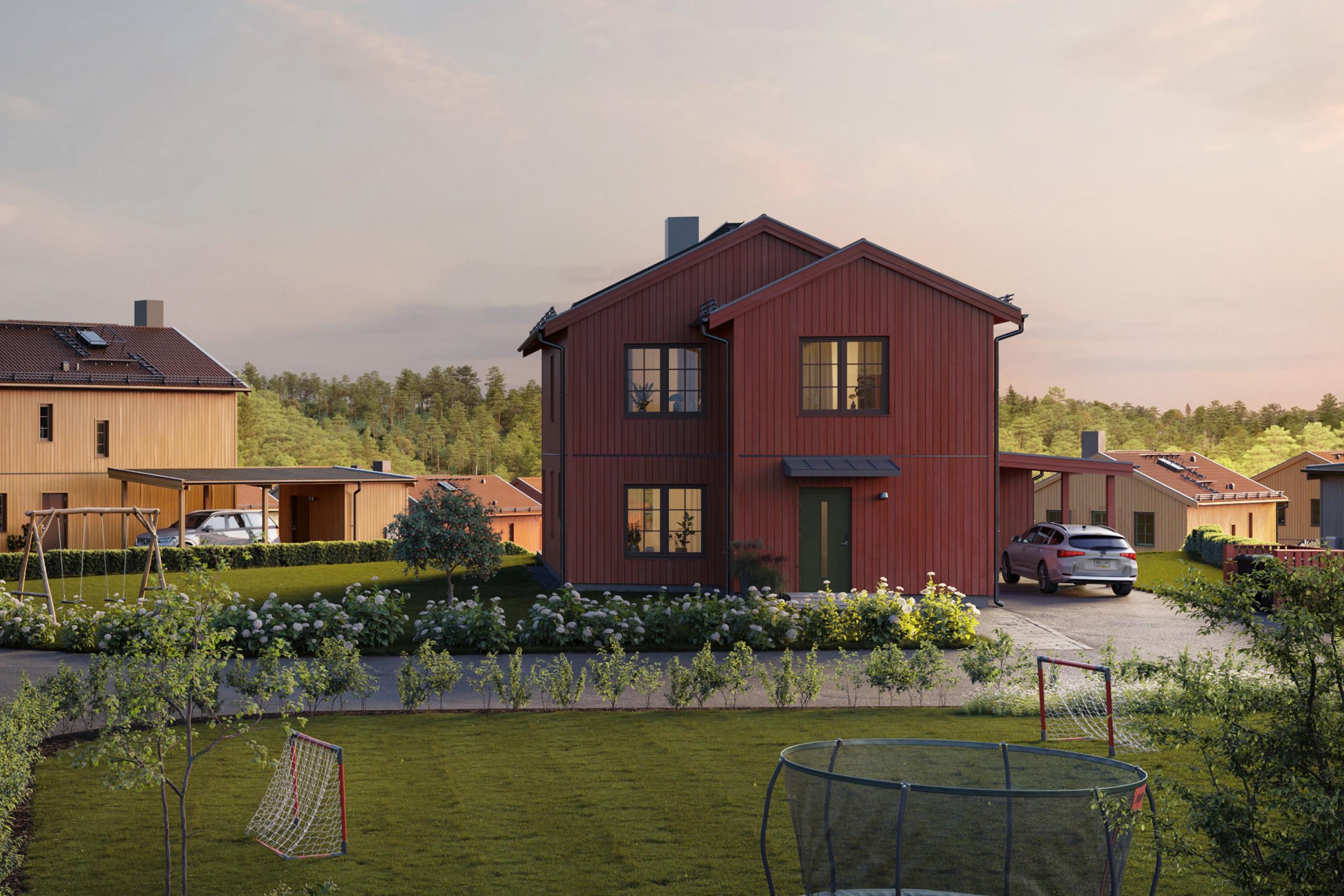 Buskar, staket, träd på tomten etc. som visas i våra visionsbilder ingår inte i bostaden och alla planteringar bekostar och ordnar du själv efter inflyttning.