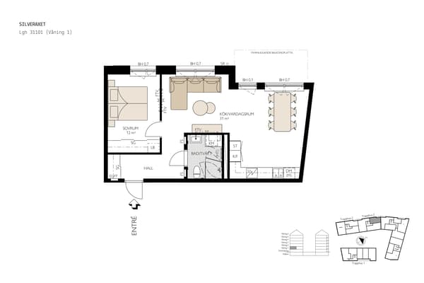 Silveraxet erbjuder inte bara ett hem, utan en hel livsstil. Med närhet till Göteborgs innerstad och det vackra promenadstråket längs älven är läget oslagbart. Här har du all service du behöver runt hörnet, med caféer, restauranger och handel i närheten. Goda kommunikationer gör det enkelt att ta sig runt, vare sig du pendlar till jobbet eller utforskar allt Göteborg har att erbjuda. Med närliggande buss- och färjeförbindelser är ditt nya hem både centralt och fridfullt.