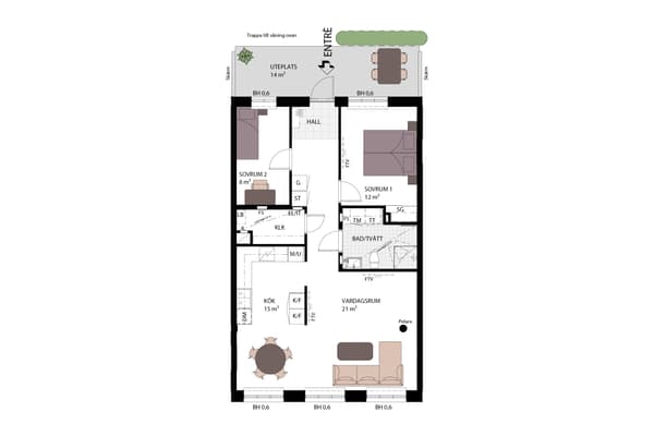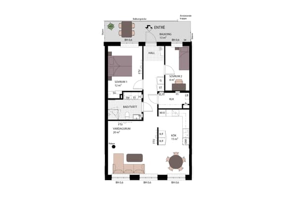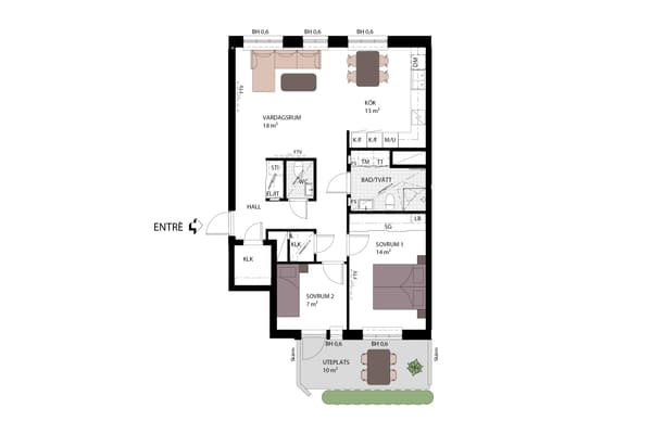 Rymlig genomgångstrea bekvämt belägen på entréplan med generös takhöjd som tillsammans med de stora, spröjsade fönsterpartier bidrar bostadens härliga rymd. Denna väldisponerade trea erbjuder inbjudande, öppna sällskapsytor som bjuder in till gemenskap med familj och vänner såväl i vardagen som till fest. Under årets varmare månader förflyttas de sociala aktiviteterna ut till den stora uteplatsen som vetter mot den trevliga innergården. Här ryms både utemöbel, loungemöbel och (el-)grill. Två rejäla sovrum, om vardera 13 respektive 16 kvm, balanserar upp och skapar harmoni i hemmet.