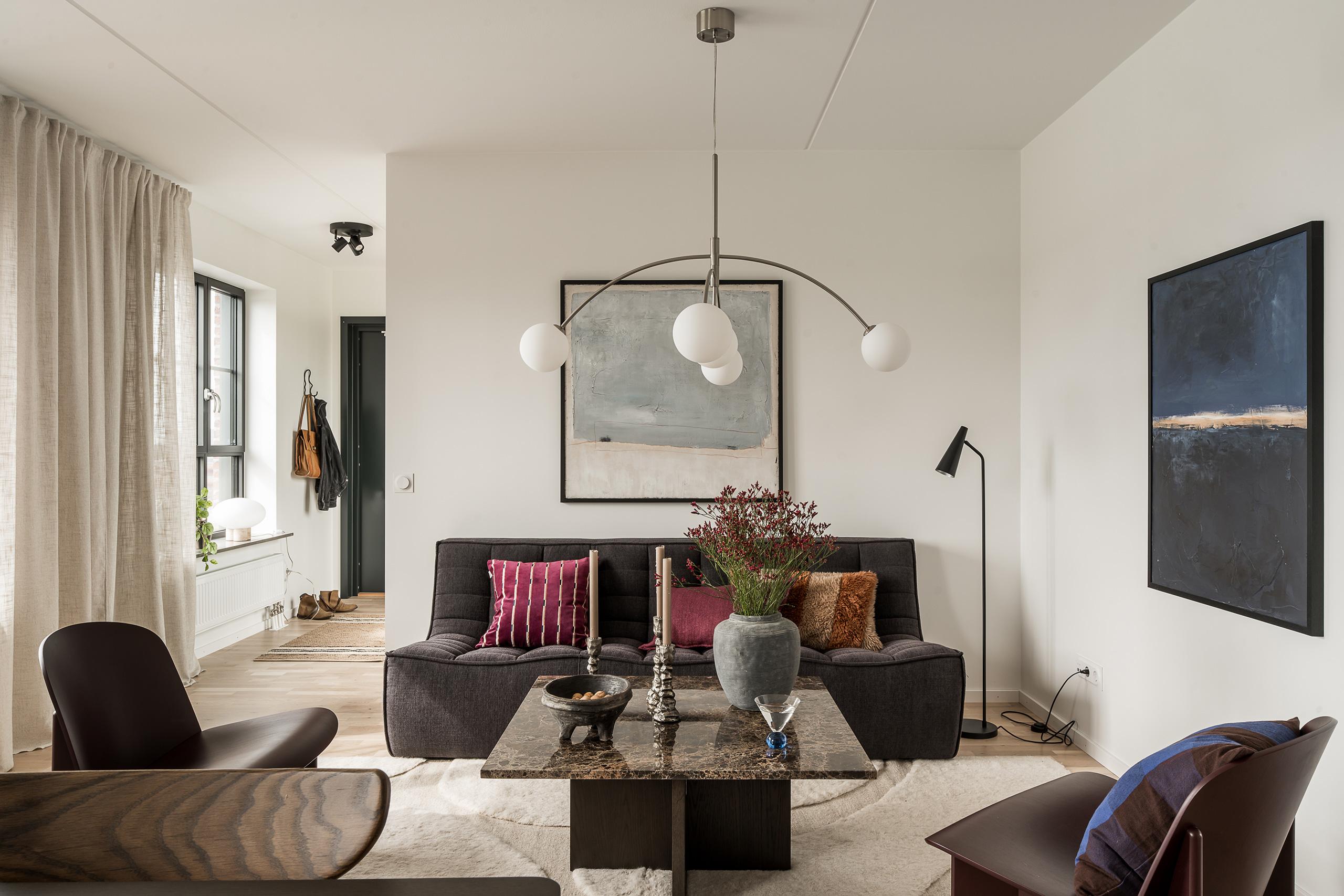 På våning 7 med gott ljusinsläpp och friare vyer ligger denna välplanerade trea om 67 kvm. Den öppna planlösningen mellan kök och vardagsrum är både inbjudande och funktionell. Köket är placerat i vinkel och öppnar upp mot det sociala rummet, med plats för både matplats och soffhörna. Härifrån nås också en av lägenhetens två balkonger – ca 4 kvm i nordvästläge. Den andra, större balkongen om ca 8 kvm vetter i söderläge från sovrummet och bjuder på fina solchanser och plats för både matgrupp och växter.