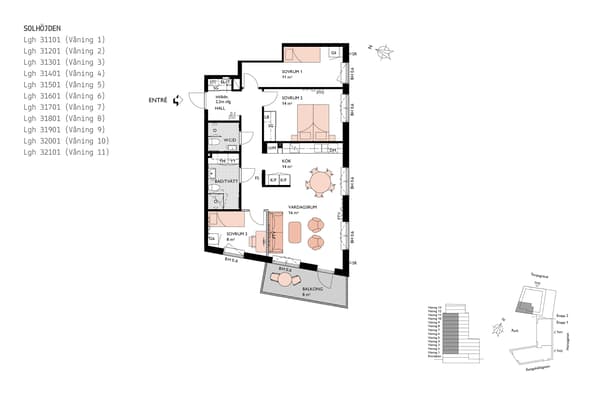I Solhöjden bor du centralt och känner pulsen i denna nya stadsdel med all tänkbar service och kommunikationer runt husknuten. Är du inte bekant med området finns här ett stort utbud av butiker, caféer och restauranger och en kort promenad bort ligger Resecentrum för smidig transport både söder-och norrut.
