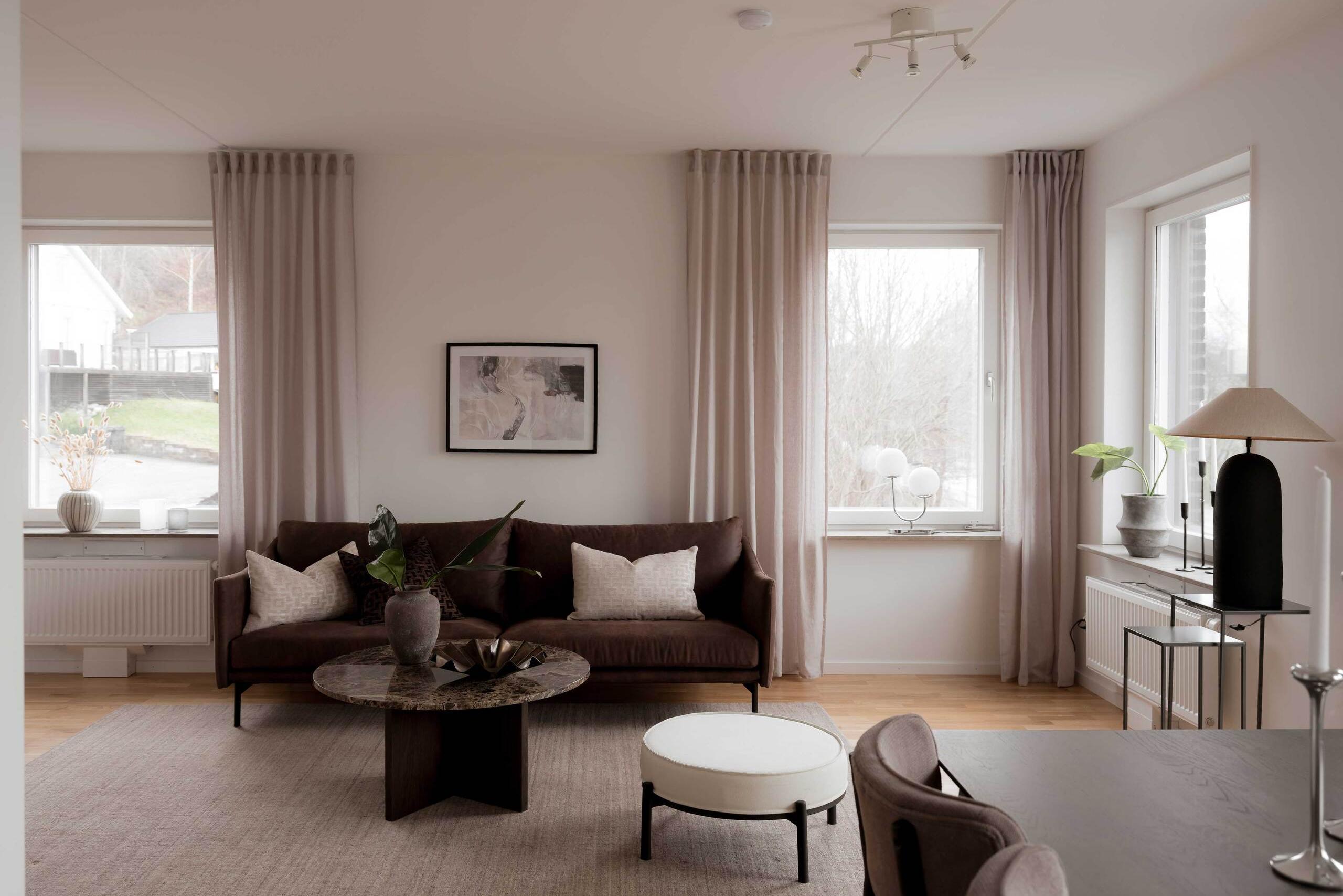 Vardagsrummet i sin tur har plats för soffgrupp, tv-möbel och vidare möblemang. Sommartid öppnar du fördelaktigen upp till balkongen där morgonkaffet intas i förmiddagssolen.
